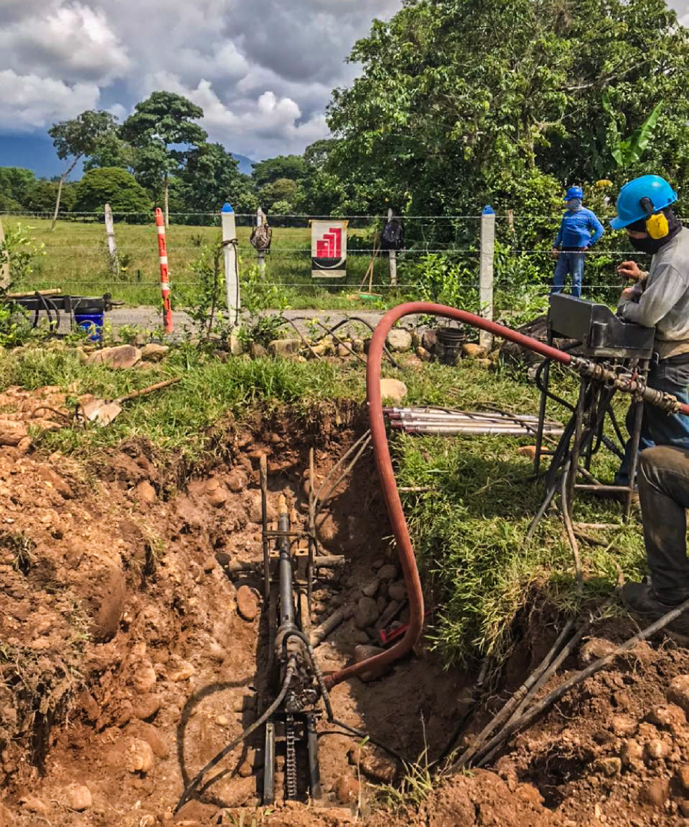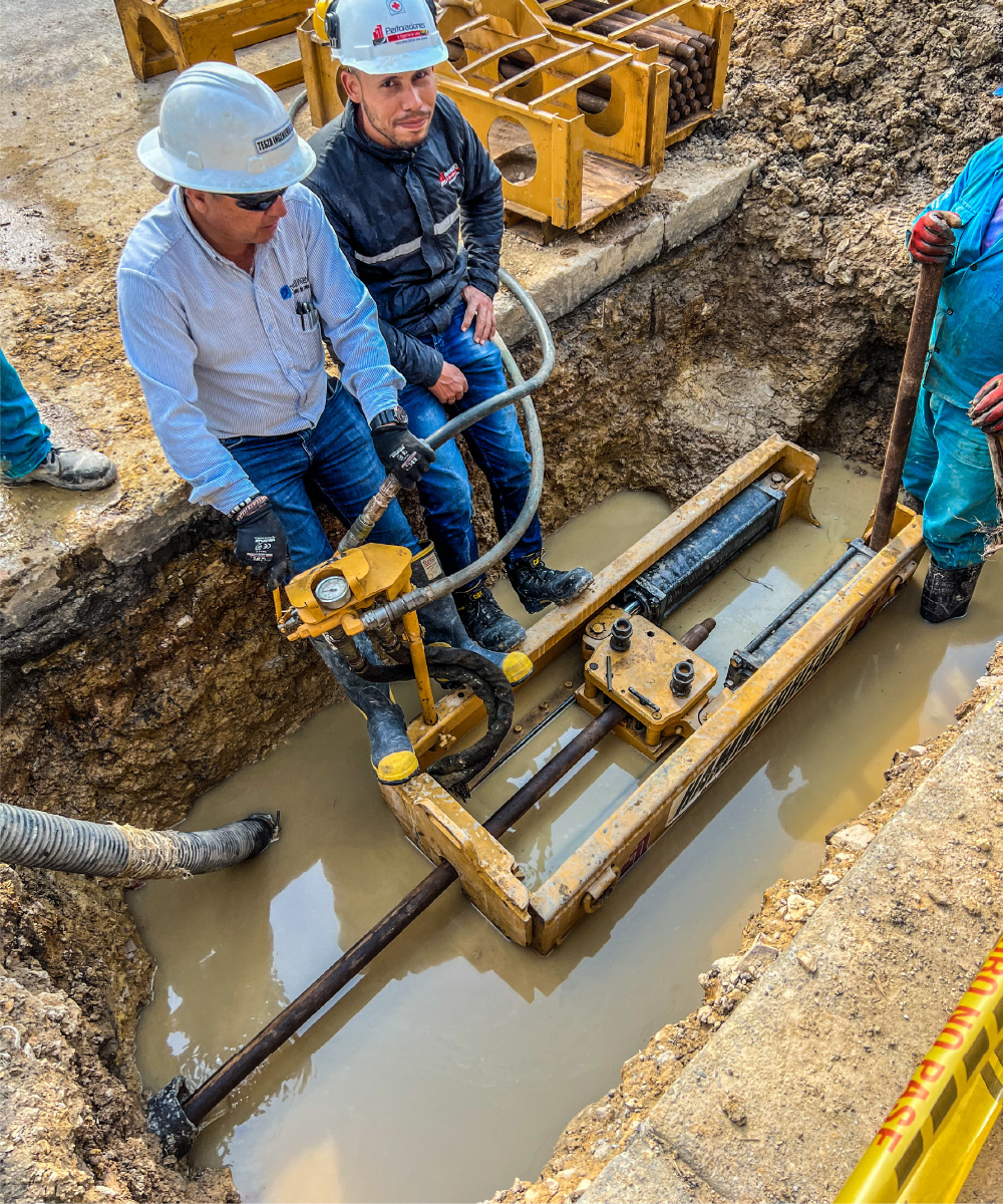 Martillos neumáticos que compactan el suelo para instalar ductos de ½” a 4″ en suelos como arcillas y limos, alcanzando hasta 20 m de longitud.