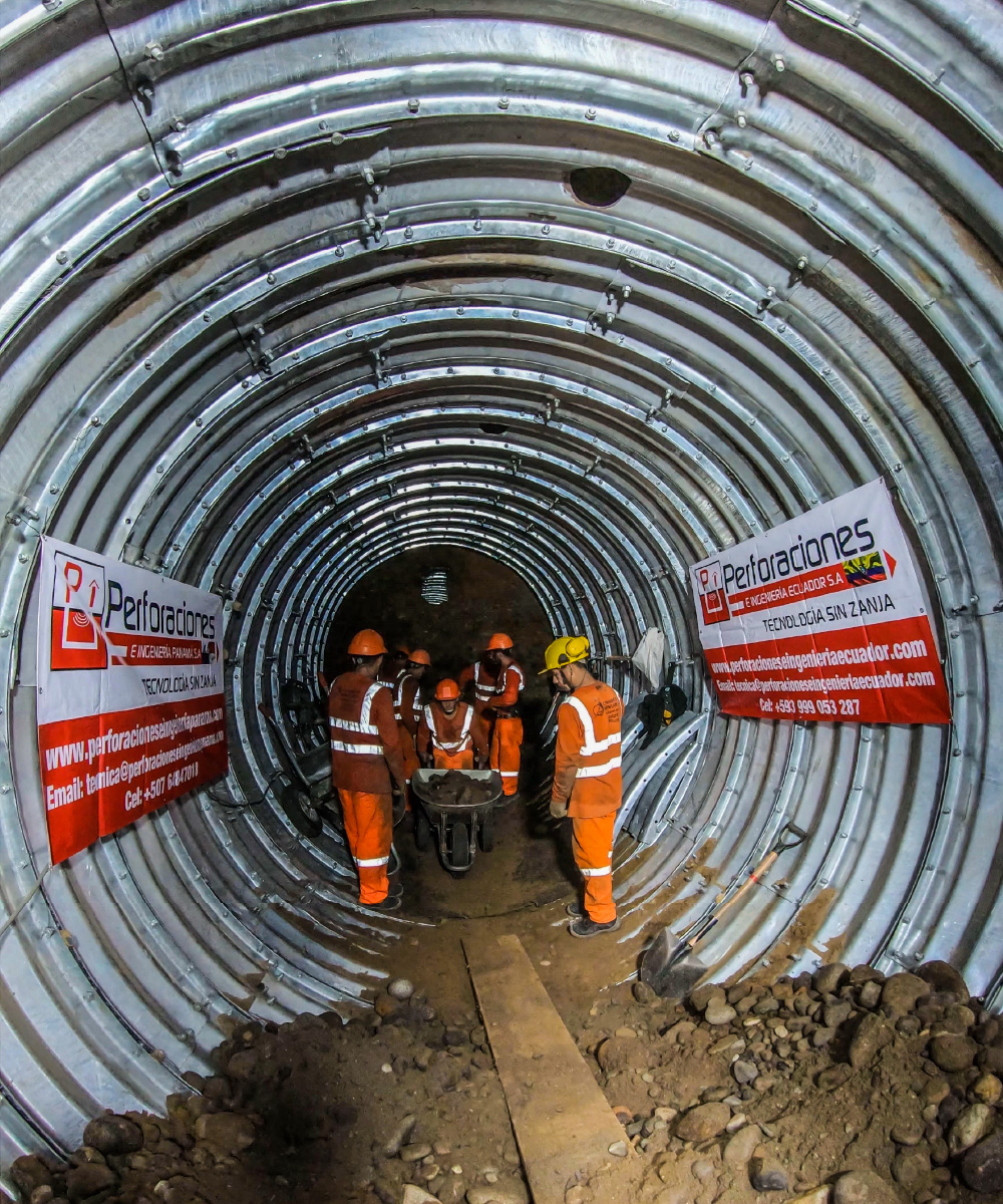 Es un sistema económico y flexible para construir túneles urbanos sin abrir zanjas, ideal para drenajes; se instala desde pozos verticales con láminas de acero y se sella con mortero para su uso final.