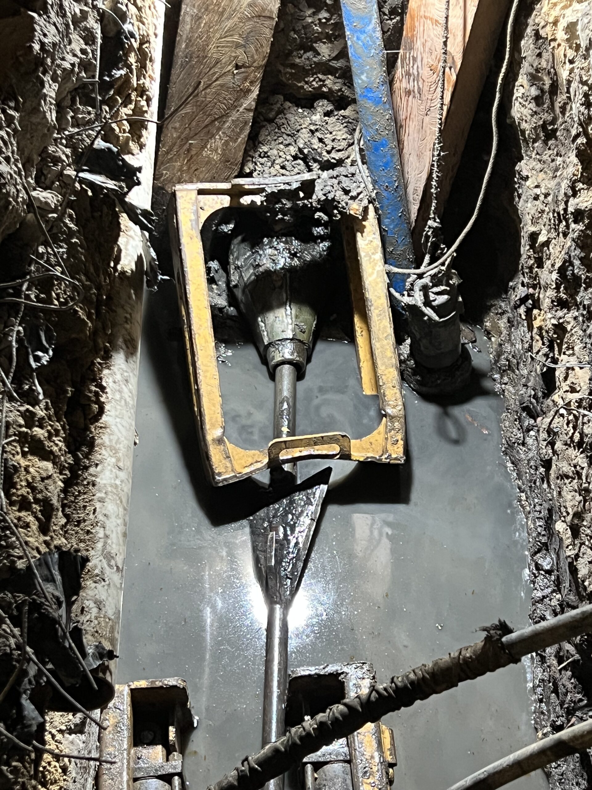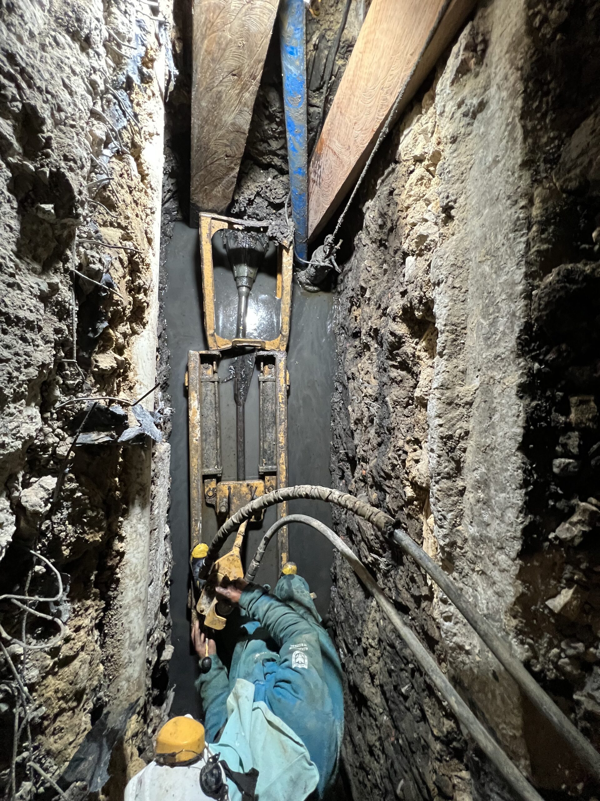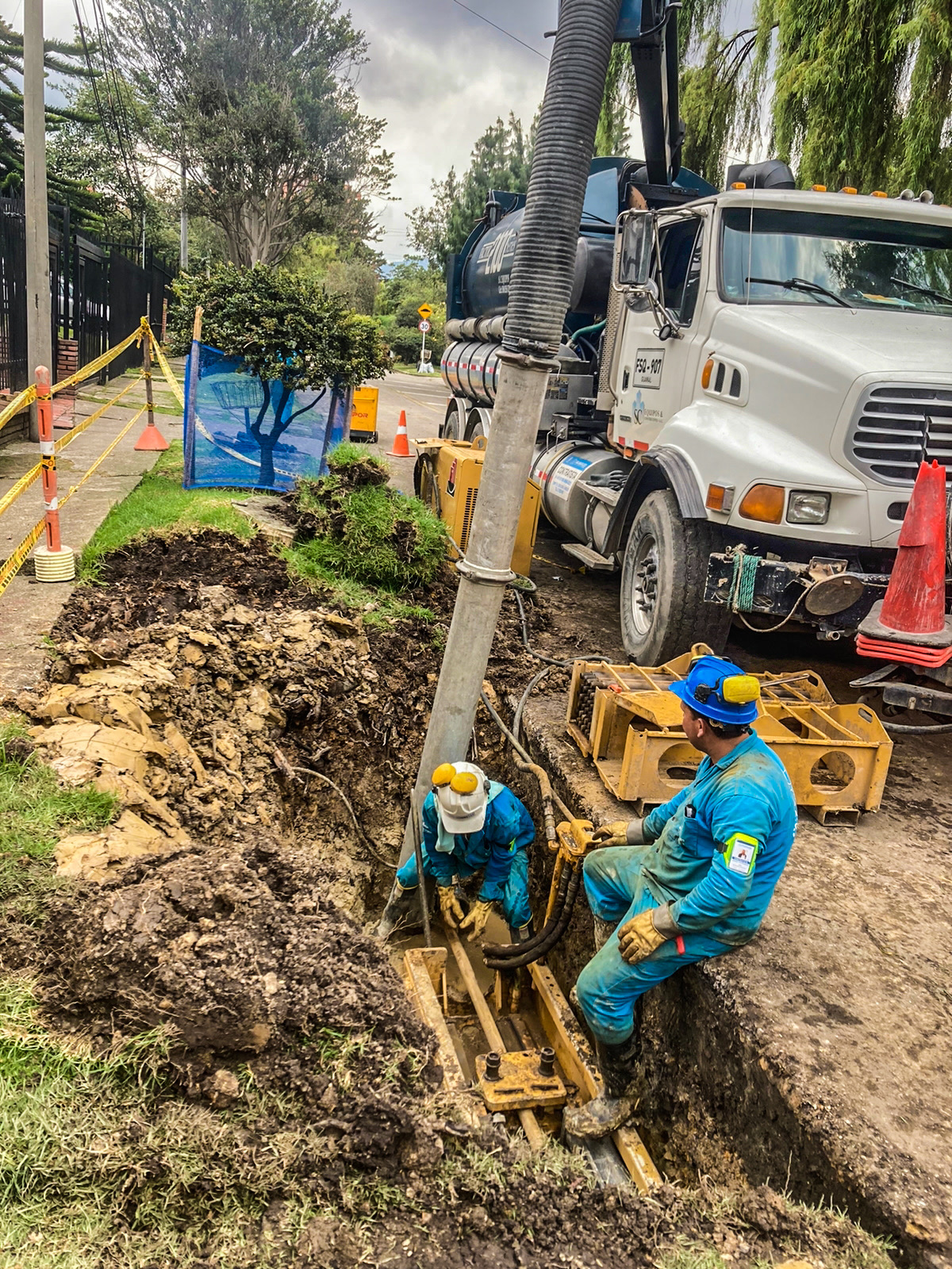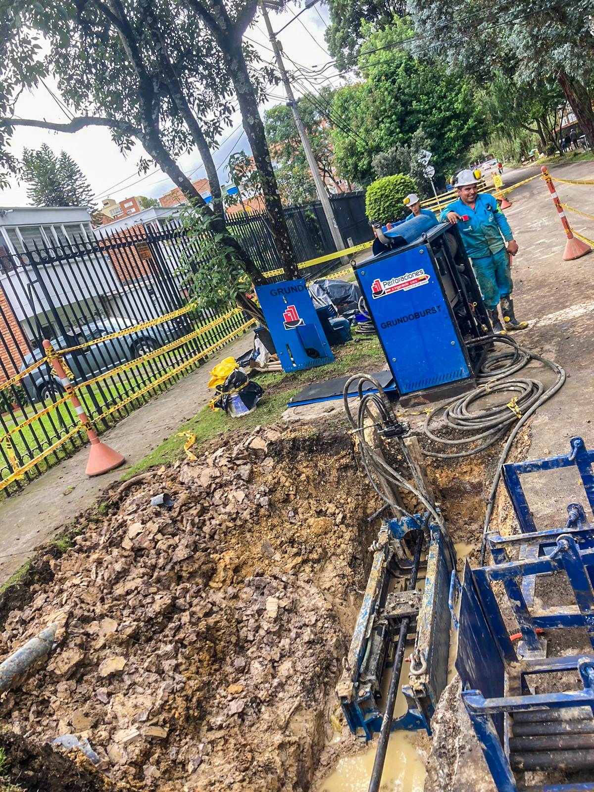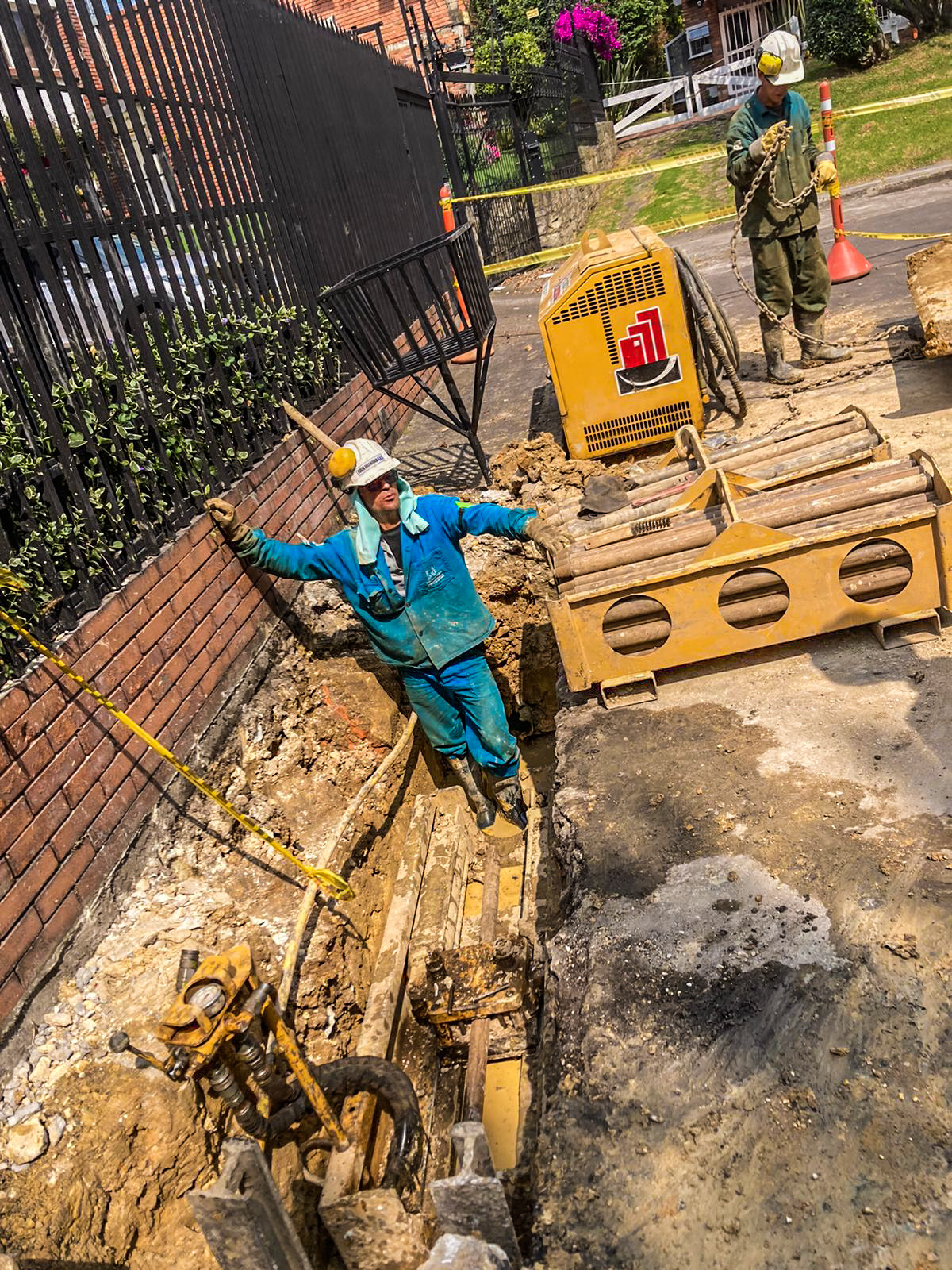 La máquina de restitución instala las varillas por dentro de la tubería a sustituir tanto para acueductos y alcantarillados en diámetros de 3″ hasta 60″, desde el pozo de inicio hasta el pozo de salida en longitudes de 80m. a 100m. Se conecta una cuchilla de corte de roca horizontalmente utilizando una en ensanchamiento de mayor diámetro del foso de salida, el tubo viejo es reventado y compactado a lo largo de la sustitución en el terreno. La tubería nueva instalada a medida que se van recogiendo el tren de varillas, permite el reemplazo de tuberías de hierro fundido, concreto, asbesto, pvc y en general materiales fractúrables por uno nuevo de polietileno del mismo diámetro o mayor, según las condiciones del subsuelo.